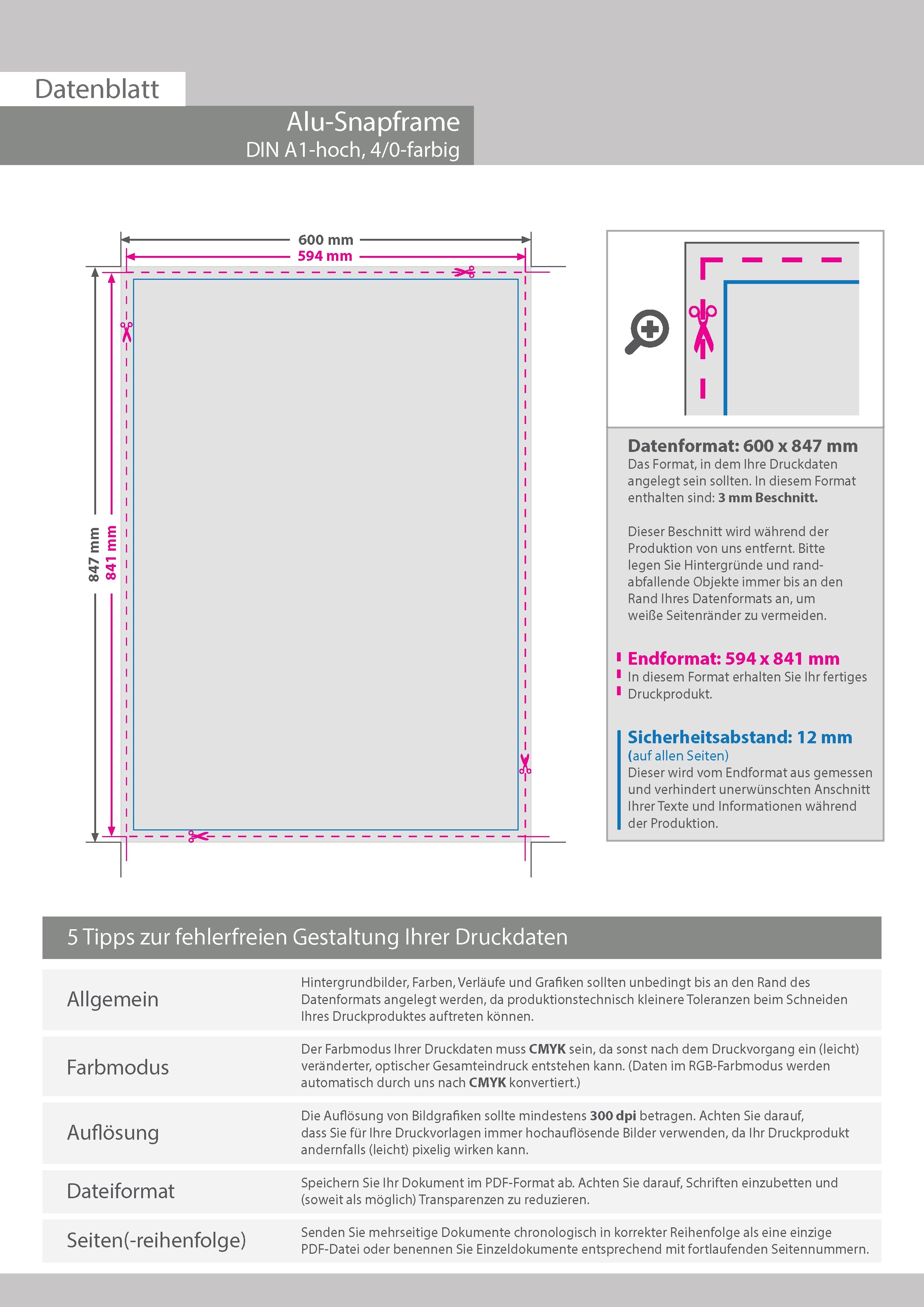 Alu-Snapframe für A1 hoch (594 x 841 mm) inklusive Druck 4/0-farbig
